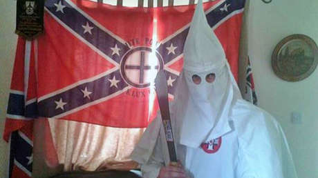 Una tercera imagen, de lo que la Fiscalía denominó el "álbum de la familia Thomas-Patatas", muestra supuestamente al joven con un "machete" en mano y ataviado del Ku Klux Klan, delante de una bandera confederada de los EE.UU.