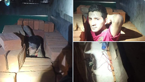 Asimismo, otro presunto pandillero fue capturado mientras se escondía entre un montón de ladrillos, donde incluso tenía una sábana, agua y una linterna.