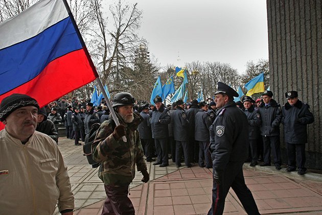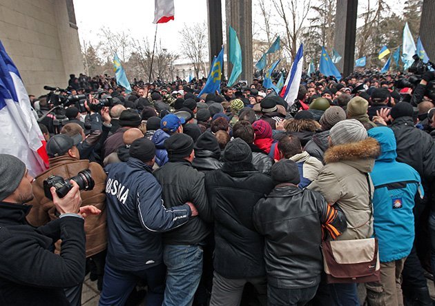 Miles de partidarios y detractores del nuevo poder en Ucrania organizaron protestas en Simferópol, la capital de la República Autónoma de Crimea, perteneciente a Ucrania.