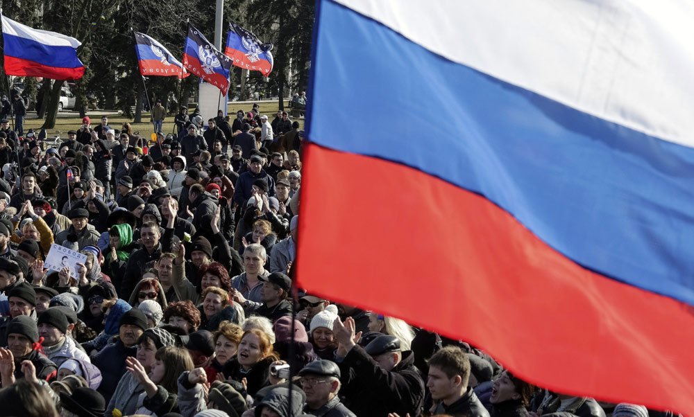 El pasado viernes miles de personas se congregaron en el centro de la ciudad con banderas rusas, demandando la convocatoria de un referéndum para determinar el estatus de esta región minera de importancia estratégica.