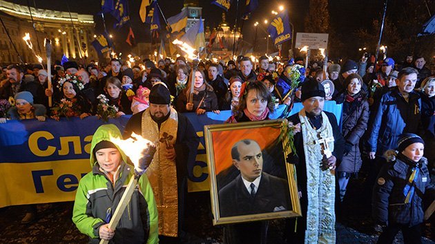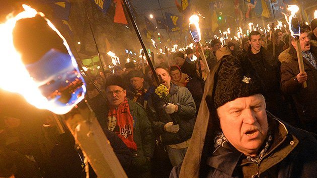 Este partido organizó una procesión con antorchas en en la capital ucraniana el pasado 1 de enero para conmemorar el 105 aniversario del nacimiento de Stepán Bandera