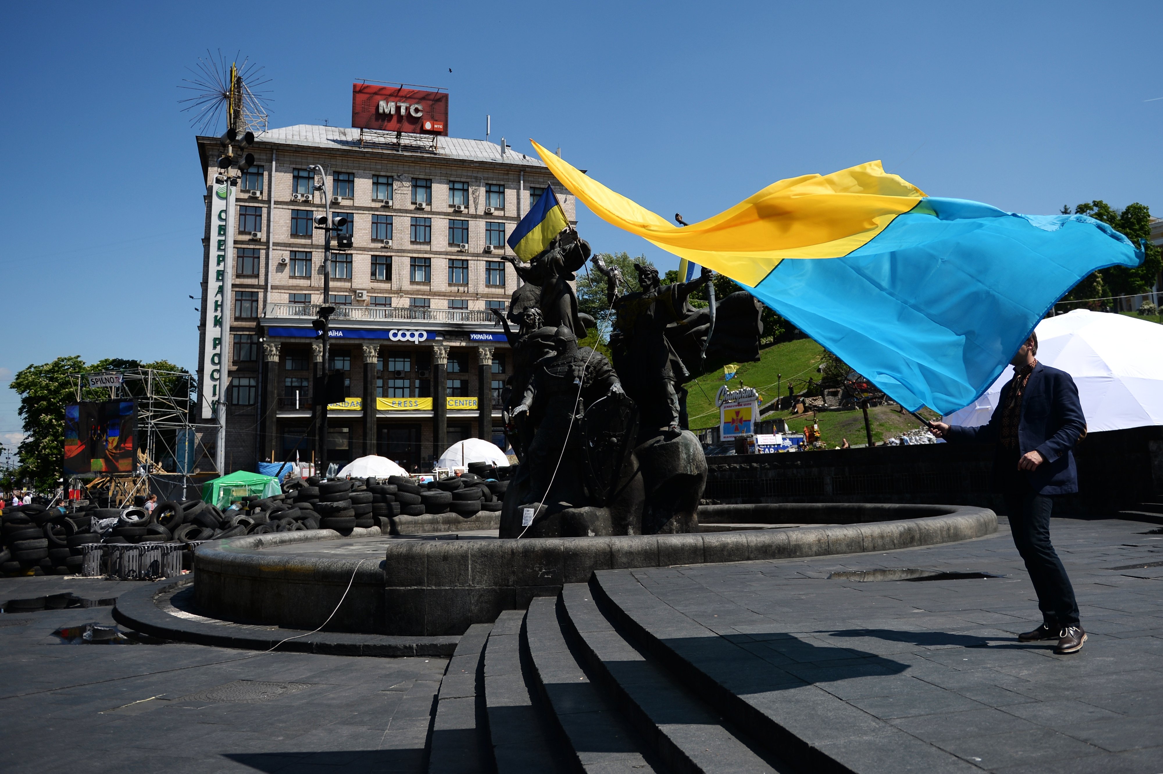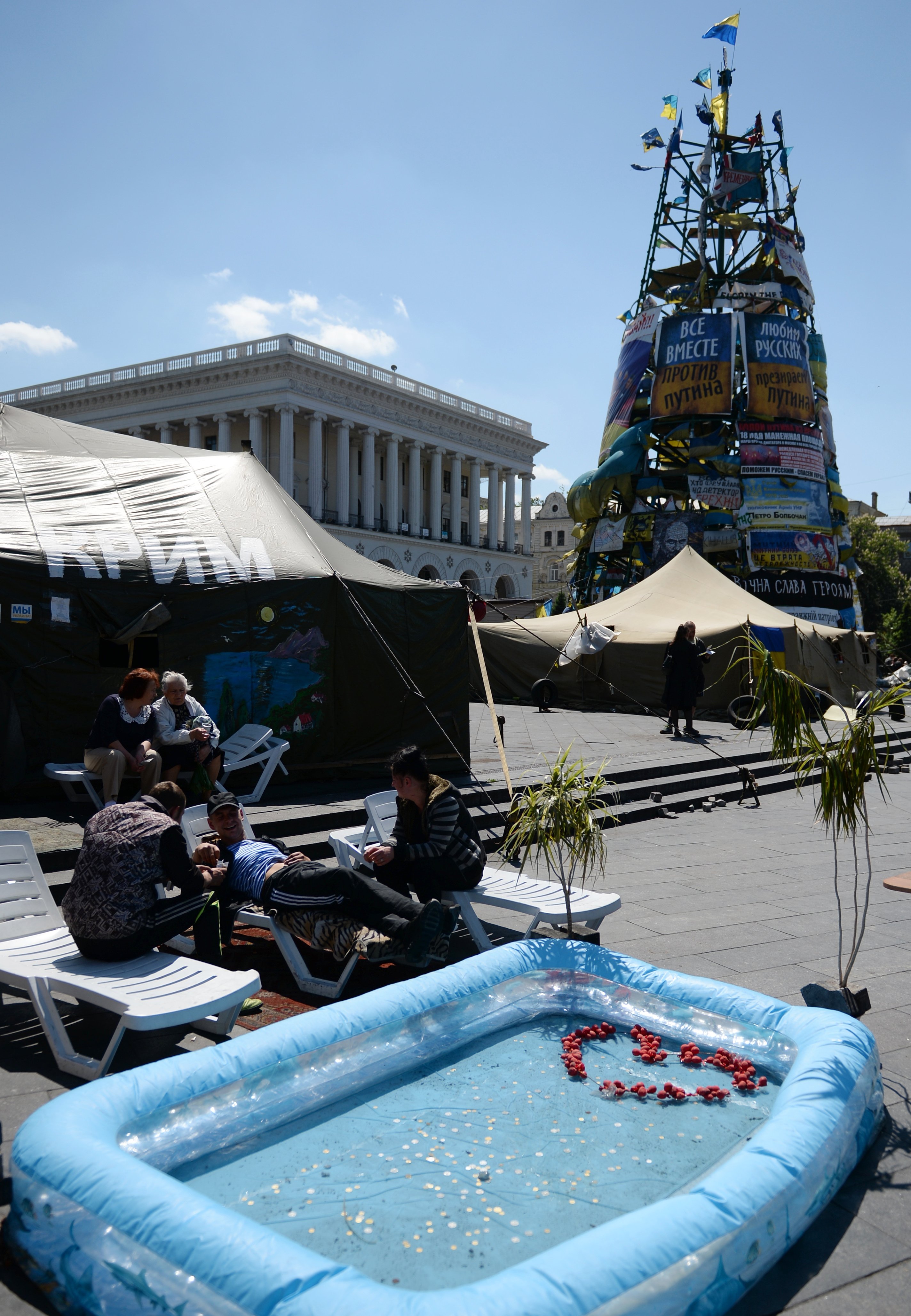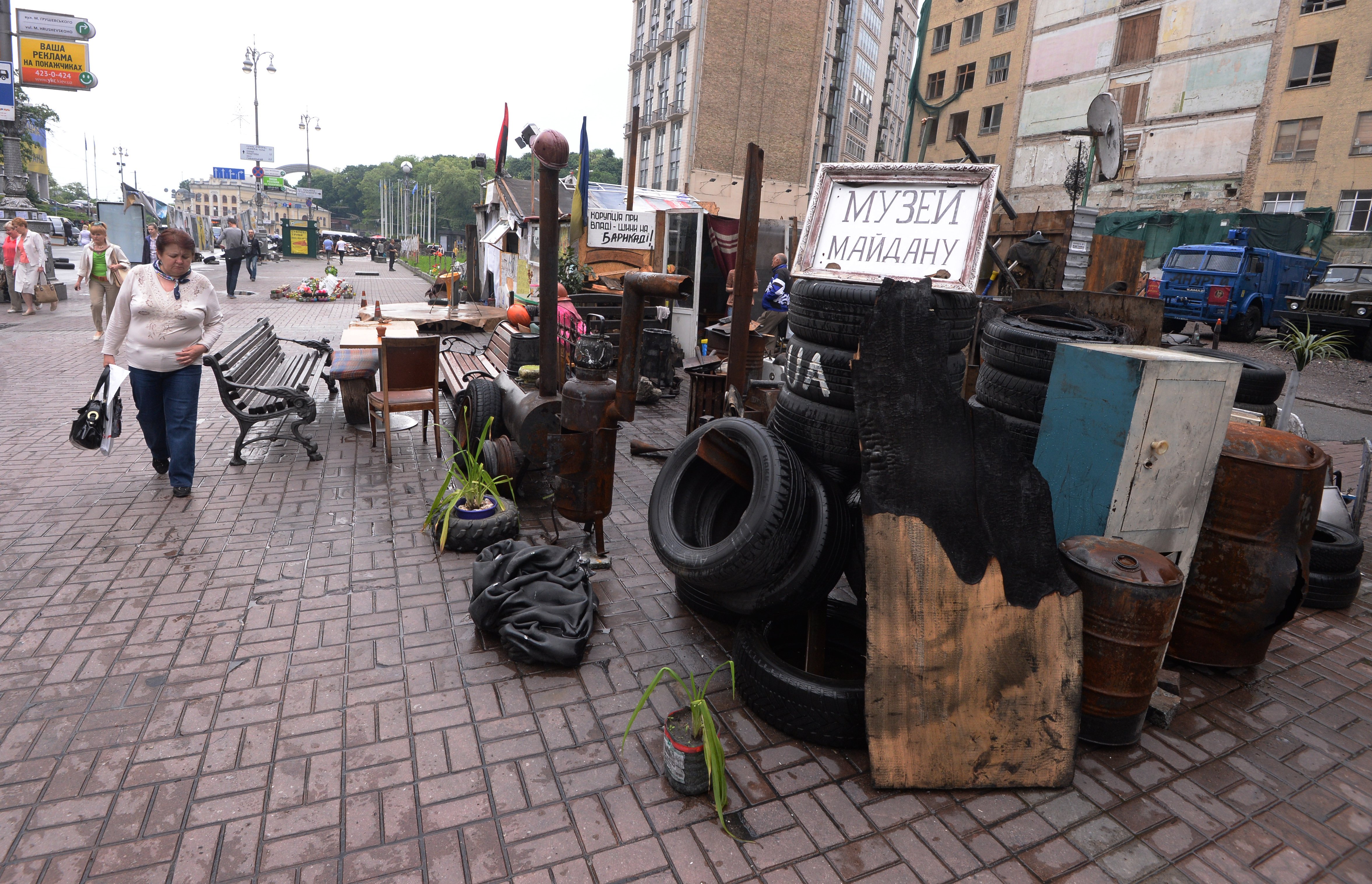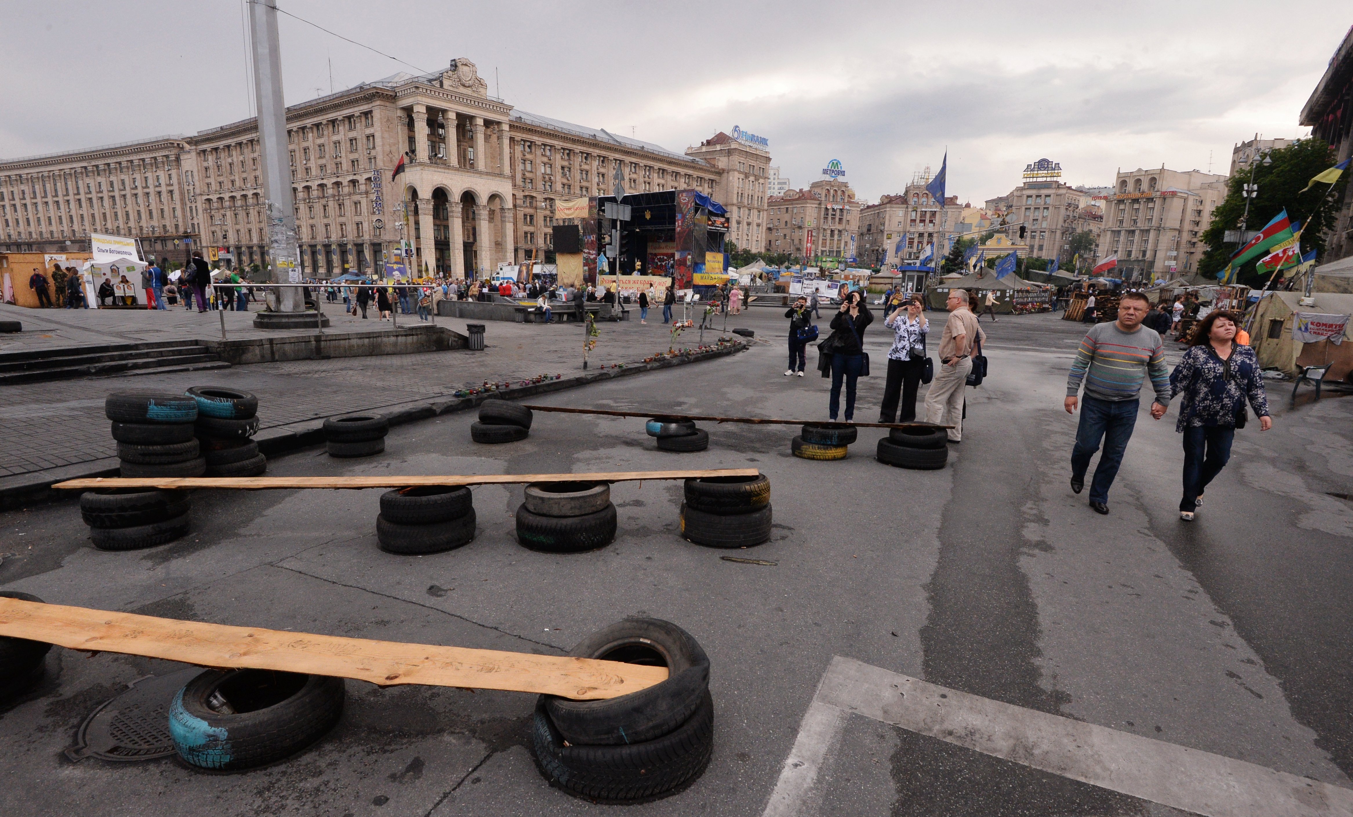 La plaza Maidán en Kiev, que hace varios meses fue el centro de las protestas y el símbolo de la resistencia nacional, se ha convertido en una atracción turística y en el hogar de algunos manifestantes.