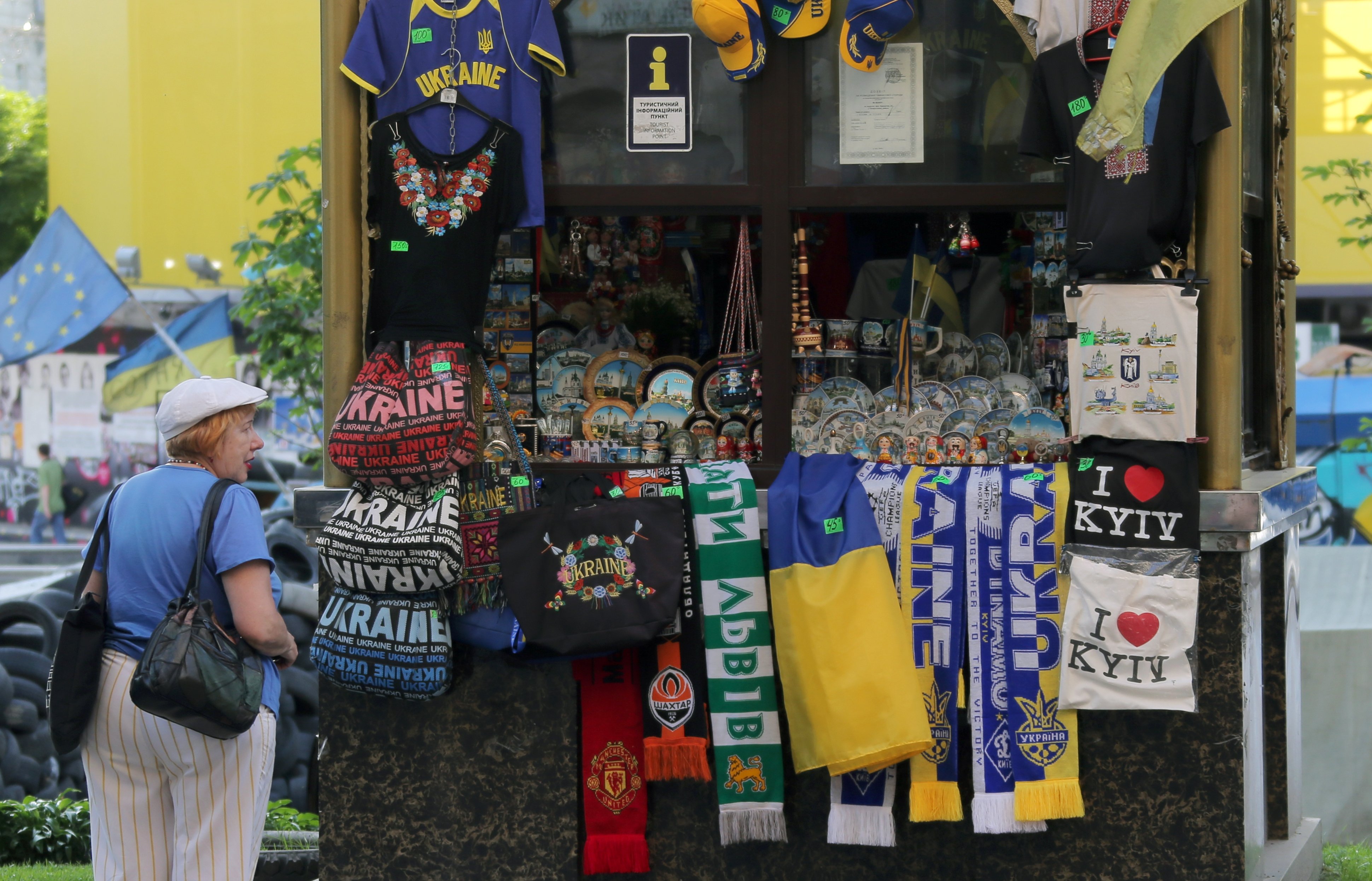 RIA Novosti "La icónica plaza Maidán ahora está llena de cosacos, turistas y gente sin hogar", asegura el artículo, y describe una plaza donde uno puede encontrar personas disfrazadas de conejo rosa, cebra o perro con quien los numerosos turistas se sacan fotos. Además la plaza está llena de puestos de suvenires.