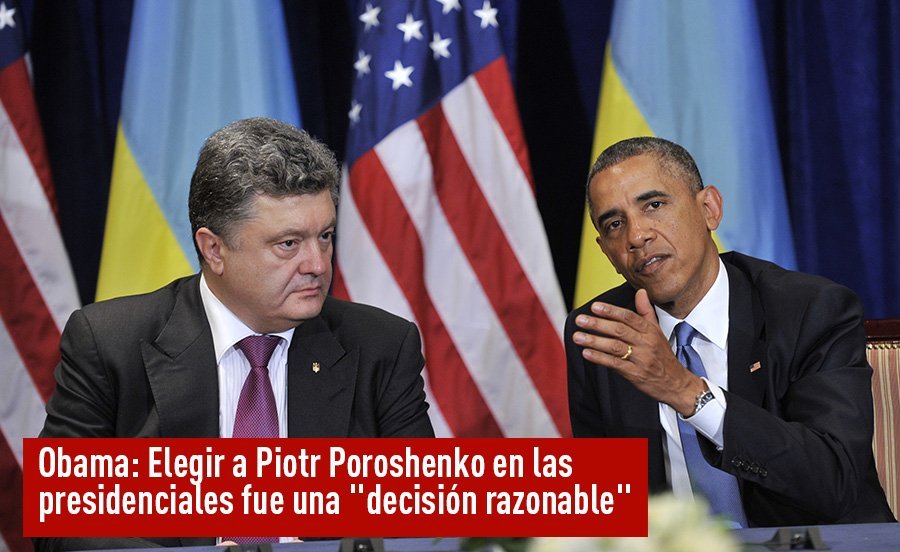 En el primer encuentro mantenido por el presidente de Estados Unidos, Barack Obama, y su homólogo electo ucraniano, Piotr Poroshenko, celebrado antes de incluso de la investidura de éste, ambos mandatarios han discutido el aumento de la ayuda de EE.UU. a Ucrania y la solución de la crisis en el país. Sin embargo, aunque Washington expresa ahora su total apoyo a Poroshenko, no siempre lo ha visto con buenos ojos.