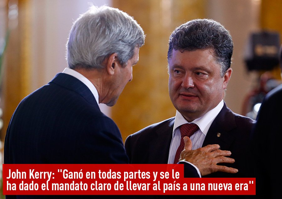 Esta semana el secretario de Estado de EE.UU., John Kerry, saludó la victoria de Poroshenko en las elecciones y dijo que "ganó en todas partes y se le ha dado un mandato claro de llevar al país a una nueva era".