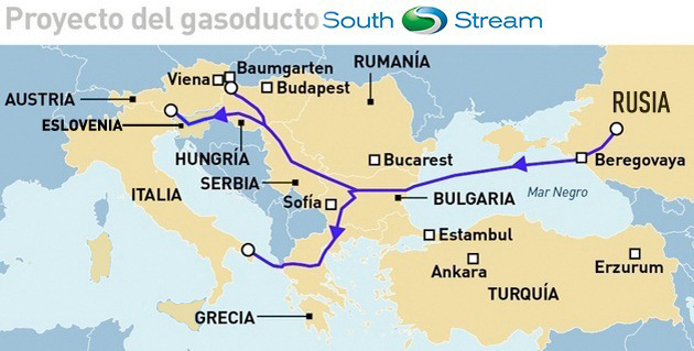Rusia está dispuesta a construir el gasoducto South Stream en Europa para eliminar los riesgos que puedan impedir el tránsito de gas. Pero si Europa abandona el proyecto la UE deberá asumir el riesgo de que el suministro de gas no esté garantizado, explicó Uliukáyev a los periodistas durante un desayuno de negocios en Stuttgart (Alemania), informa Interfax.