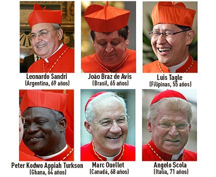 Andreas Solaro / AFP Los candidatos que más suenan en las apuestas son el ghanés Peter Turkson, de 64 años; el italiano Angelo Scola, de 71 años; el brasileño Pedro Odilo Scherer, de 63 años, y el canadiense Marc Ouellet, de 69 años.