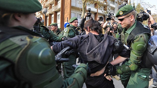 Cientos de manifestantes alemanes indignados por el programa estadounidense de espionaje en internet se reunieron en Berlín para protestar ante la llegada del presidente de EE.UU., Barack Obama.