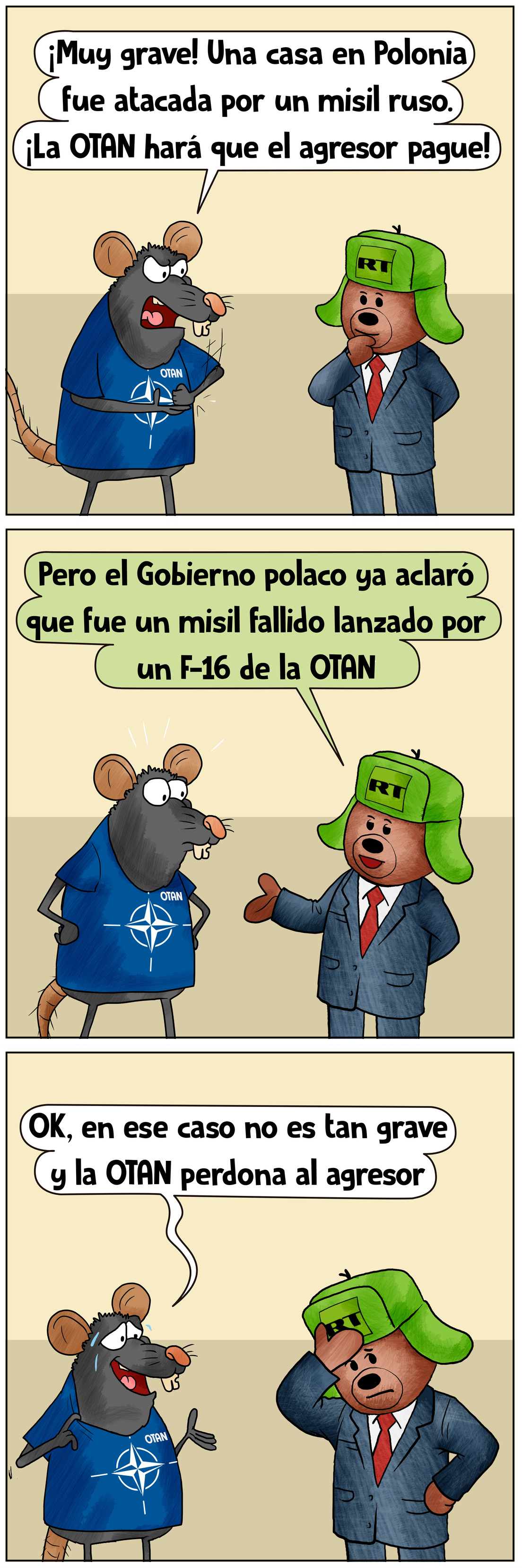 Después de acusar a Rusia, ahora la OTAN se enfrenta al hecho de que fue un F-16 de la OTAN el que bombardeó una casa en Polonia. Momento incómodo que no se le escapó a nuestro atento osito-reportero 😅