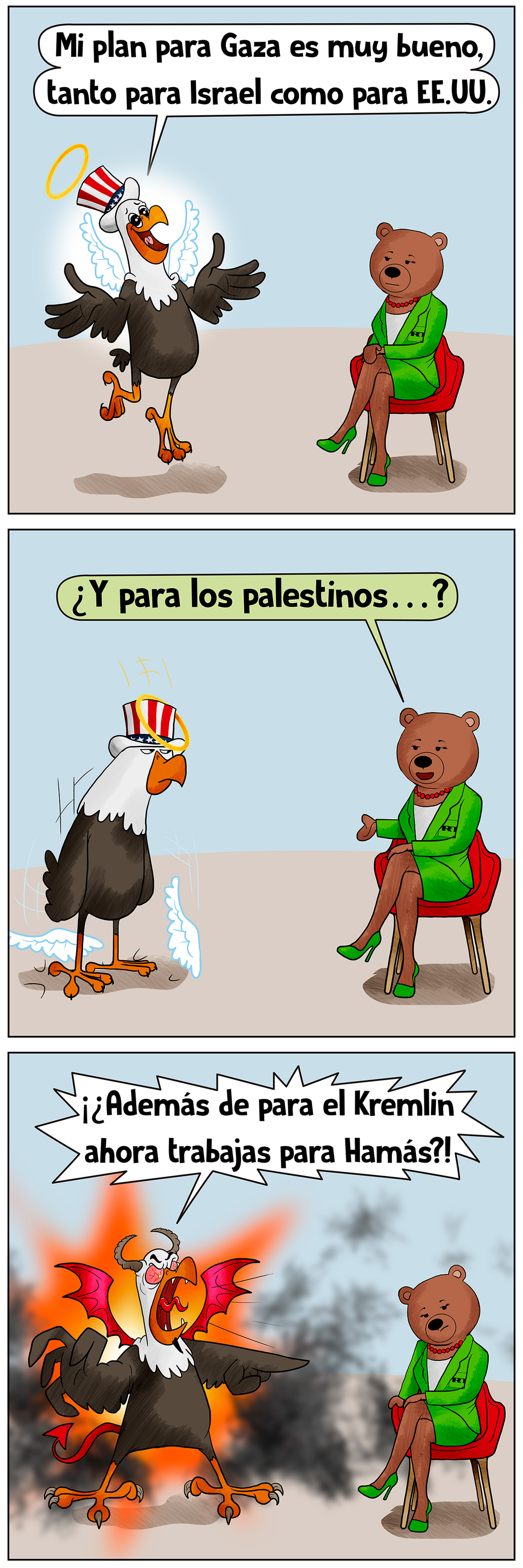 Trump y Netanyahu presentaron un plan para Gaza que, según ellos, es muy generoso... pero generoso con Washington y Tel Aviv, tal y como comprobó nuestra osita-reportera con una 'inocente' pregunta 😬