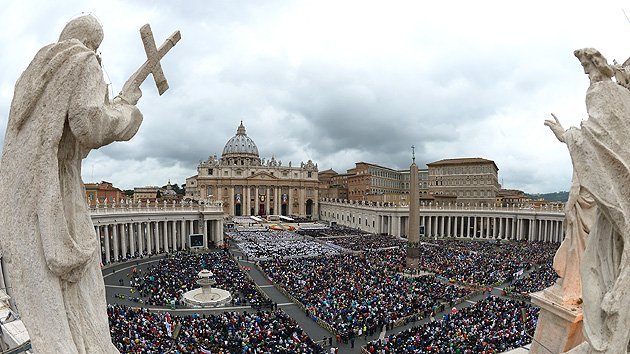Unos 800.000 fieles de todo el mundo abarrotaron este domingo la Plaza de San Pedro, en el Vaticano, para asistir a la canonización de Juan XXIII, 'el papa bueno', y de Juan Pablo II, 'el papa peregrino'.